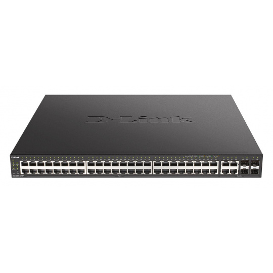 D-Link DGS-2000-52MP je plně řízený 52-portový Gigabit Managed PoE switch pro podnikové sítě. Přepínač je osazen 48 porty 10/100/1000M RJ-45 s podporou napájení 802.3at PoE+ (max. 30W na port) a čtyřmi kombinovanými Gigabit Combo porty RJ-45/SFP, s podporou 100M a 1000M SFP (Mini-GBIC) transceiverů pro optický uplink. Celkový PoE výkon přepínače je 370W. Aktivní chlazení přepínače zajišťují tři inteligentně řízené ventilátory. Součástí dodávky jsou držáky pro montáž do 19“ rozvaděče. Switche D-Link řady DGS-2000 nabízí komplexní sadu L2 funkcí, bezpečnostní funkce, funkce kvality služeb (QoS) a základní L3 funkce (max. 4 IP Interfaces, statický routing s max. 128 IPv4/IPv6 záznamy, default route, IPv6 Neighbor Discovery). Řešení případných potíží v sítí usnadňují funkce 802.3ah OAM, diagnostika kabelů a detekce jednosměrné linky (D-Link Unidirectional Link Detection, DULD). ISP poskytovatelé internetu ocení funkce Q-in-Q (Port Based), Multicast VLAN (ISM VLAN) nebo IGMP Authentication / Filtering pro efektivní provoz IPTV služeb. Správa přepínače je přes webové rozhraní, CLI sériovou konzoli, Telnet, SLL, SSH nebo pomocí SNMP příkazů. Pro prvotní konfiguraci a základní správu je k dispozici bezplatný SW nástroj a mobilní aplikace D-Link Network Assistant (DNA), pro centrální správu rozsáhlejších sítí je určena pokročilá platforma D-View 7..