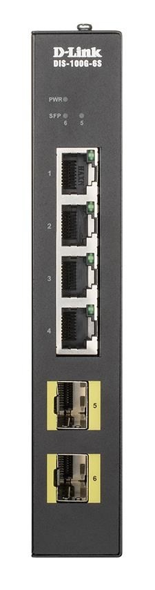 D-Link DIS-100G-6S Průmyslový Gigabit unmanaged switch, 4x GbE, 2x SFP, DIN