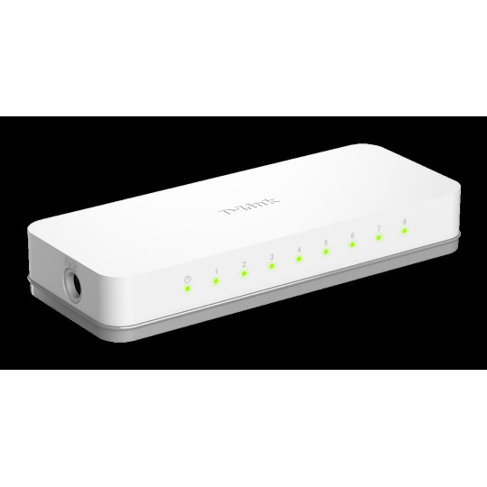 8-Port 10/100M  Desktop Switch - IEEE 802.3 10BASE-T - IEEE 802.3u 100BASE-TX compliance - Support Auto-Negotiation for each port - Support Half/Full-Duplex operations at 10/100Mbps. - Support back pressure at Half-Duplex operation - IEEE 802.3x Flow Control support. - Auto MDI/MDIX- D-link Green - D-Link Green power saving Technology.