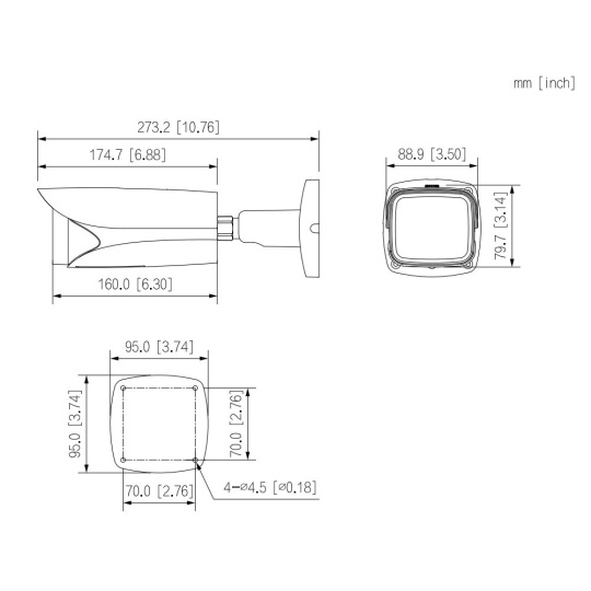 273.2 mm × 95 mm × 95 mm (10.76" × 3.74" × 3.74") (L × W × H)