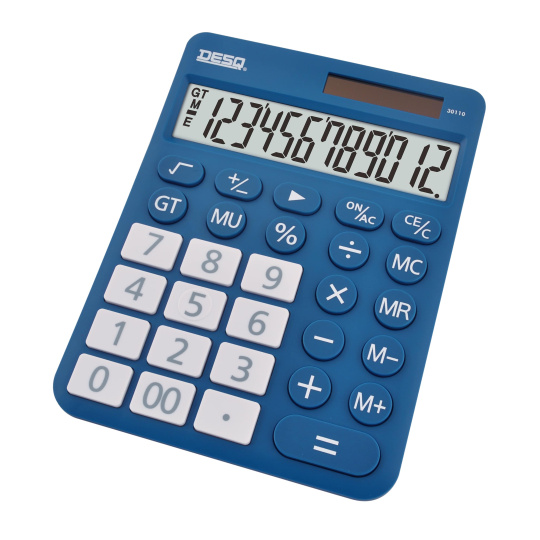 Extra velká stolní kalkulačka New Generation v moderním dvoubarevném designu, která kombinuje praktické funkce s přehledným rozložením kláves.  ? Velký a šikmo umístěný LCD displej – snadná čitelnost z jakéhokoliv úhlu ? Velká tlačítka – snadné a pohodlné ovládání ? Dvojí napájení – solární panel + baterie ? Zobrazení aktuální operace na displeji – přehledná práce s funkcemi ? 4tlačítková paměť – efektivní výpočty ? Funkce pro obchodní výpočty: MU-GT-Backspace-00 ? Gumové nožky – zajišťují stabilitu na stole  New Generation kalkulačky jsou dostupné v jednobarevném i dvoubarevném designu, což je ideální pro ty, kteří chtějí přidat trochu barev na svůj pracovní stůl. Všechny modely jsou vybaveny automatickým vypnutím, které šetří energii..