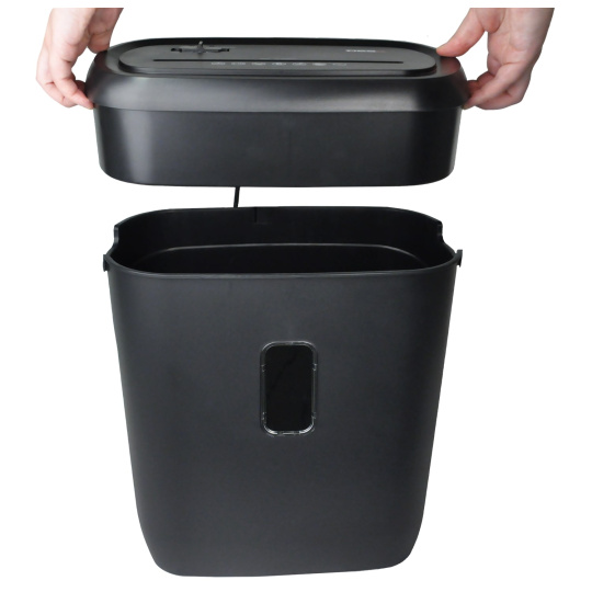 Výkonný křížový skartovač papíru s prostornou nádobou, ideální pro domácí kancelář a malé kanceláře.  ? Skartuje papír (včetně spon) a platební karty ? Kapacita až 11 listů (A4, 70 g/m2) na jeden průchod ? Prostorná 21litrová nádoba – pojme až 200 listů skartovaného A4 papíru ? Bezpečnostní úroveň P-4 – rozřeže jeden list A4 na 440 částic ? LED indikátor přehřátí – ochrana proti přetížení ? Sledovací okénko nádoby – snadná kontrola zaplnění odpadu ? Možnost použití bez odpadního sáčku  Pokročilé funkce:  ?? Automatický start-stop a manuální zpětný chod – snadné odstranění zaseknutého papíru ?? Zařízení funguje pouze tehdy, pokud je nádoba správně umístěna – zvýšená bezpečnost ?? Tepelná ochrana – zabraňuje přehřátí skartovače  Používejte skartovač doma i v kanceláři, aby se důvěrné dokumenty nedostaly do běžného odpadu..