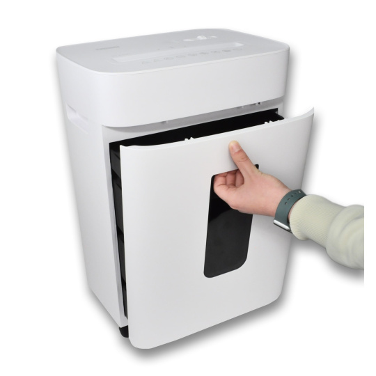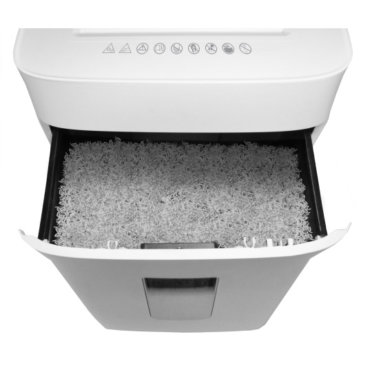 Mikrořezný skartovač určený pro nejvyšší ochranu důvěrných dokumentů s bezpečnostní úrovní P-5.  ? Skartuje papír (včetně spon) a platební karty ? Mikrořez (2 × 12 mm) – extra jemná skartace pro maximální bezpečnost ? Bezpečnostní úroveň P-5 – 1 list A4 rozřeže na 2500 částic ? Kapacita až 8 listů (A4, 70 g/m2) na jeden průchod ? 10 minut nepřetržitého provozu – ideální pro kancelářské použití ? Prostorná 20litrová nádoba – pojme až 650 skartovaných listů A4 ? LED indikátor přehřátí a přetížení – ochrana proti přetížení ? Sledovací okénko nádoby – snadná kontrola zaplnění odpadu ? Možnost použití bez odpadního sáčku ? Tichý provoz (<65 dB) – minimalizuje hluk v kanceláři ? Čtyři kolečka – snadné přemisťování  Pokročilé funkce:  ?? Automatický start-stop a manuální zpětný chod – snadné odstranění zaseknutého papíru ?? Zařízení funguje pouze tehdy, pokud je nádoba správně umístěna – zvýšená bezpečnost ?? Tepelná ochrana – zabraňuje přehřátí skartovače  Používejte skartovač doma i v kanceláři, aby se citlivé údaje nedostaly do běžného odpadu..
