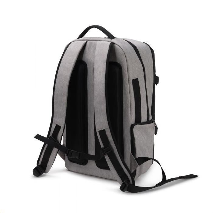 From yoga classes to the office. MOVE is designed for daily use. Comfortable thanks to its ergonomic back cushioning and cushioned shoulder straps with an adjustable chest belt. Perfectly manoeuvre your backpack thanks to the two handles for carrying. The fabric is made of water-repellent materials but in case of thunderstorms, the backpack also includes a rain cover with a reflective DICOTA logo. The primary storage area contains a notebook compartment cushioned with High Density Foam (HDF), a padded slip pocket for tablets up to 10.5 inches, a divider for documents and an elastic mesh pocket to hold your drink bottle. The second main compartment contains dividers for headphones and folders.