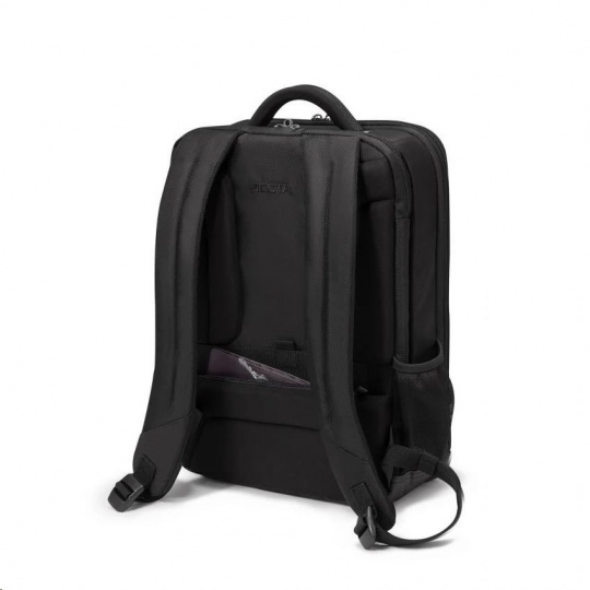 Eco Backpack PRO 12-14.1― Professional backpack with protective padding and refined functionality Today's actions shape tomorrow's world. Which is why, here at DICOTA, we are dedicated to developing environmentally friendly solutions and therefore make all the items in our ECO collections out of sustainable, recycled PET. We reuse up to 31 PET bottles, so you will receive an environmentally friendly product with a life-long guarantee. Our PET products also have the quality, look and finish that you know and love. Specifications Art.no.: D30846-RPET EAN: 7640186419925 Weight: 1.34 kg Volume: 21 liter Material: 1680D rPET Polyester Warranty: Lifetime / 30 years Dimension: 390 x 305 x 200 mm Max. Device dimensions: 340 x 245 x 40 mm Characteristics • Made of 21.5 recycled PET bottles • 21 litre storage space • Lockable and cushioned notebook compartment with fitall system and anti slip technology • Maximum security thanks to Memory Foam and EVA frame protection • EVA moulded slip pocket with Nylex material for tablets up to 12.9" • Expandable main compartment with generous storage space • Spacious front pocket with zip-pocket, key holder and workstation for accessories • Additional front pocket for power supply unit and cable