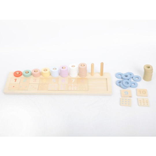 Dřevěné nasazovací počítadlo je vzdělávací pomůckou navrženou v souladu s montessori principy. Barevné provedení respektuje barevnou paletu montessori, kvalitní přírodní materiály jsou zárukou odolnosti a dlouhé životnosti. Dřevěné počítadlo je multifunkční hračkou - nasazovací hrou, vkládačkou i vzdělávací pomůckou, která zdokonalí motorické dovednosti, koordinaci očí a rukou, naučí děti poznávat barvičky a počítat..