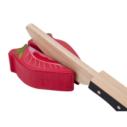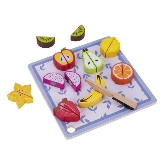 Dřevěné ovoce ke krájení je hračkou, která by neměla chybět v žádné dětské kuchyňce ani dětském obchůdku. Toto krájení je pro děti zcela bezpečné. Půlky ovoce jsou spolu spojený suchým zipem, díky kterému děti ovoce dřevěným nožem jednoduše rozkrojí. Balení obsahuje 9 druhů ovoce, dřevěné prkénko i dřevěný nůž..