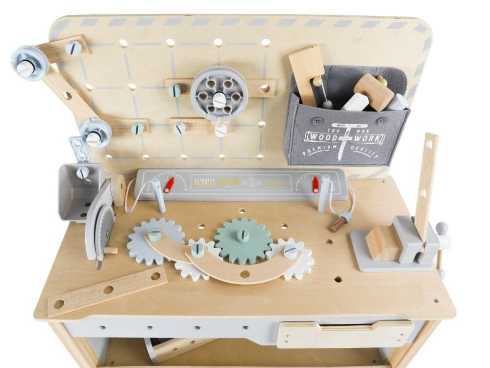 Dřevěný dětský ponk XXL s nářadím a rozšířeným příslušenstvím + opasek na nářadí ZDARMA