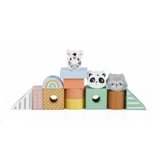 Dřevěný vláček pro děti, s kostkami a zvířátky ze ZOO, je krásnou multifunkční hračkou i dekorací do dětského pokoje. Jemné pastelové barvy propůjčují vláčku lákavý vzhled a díky neutrálním barvám je vhodným dárkem pro holčičky i kluky. Dřevěné kostky a oblíbená zvířátka mohou děti povozit po svém pokojíčku i po celém domě či bytě. Děti si mohou hrát se samotným vláčkem, s jeho jednotlivými vagónky, nakládat a vykládat kostičky a zvířátka, vytvářet různé kombinace nebo si hrát se samotnými kostkami. Při hře s vláček a jeho částmi děti zdokonalují motorické dovednosti, koordinaci očí a rukou, logické myšlení, rozvíjí logické myšlení a kreativitu.