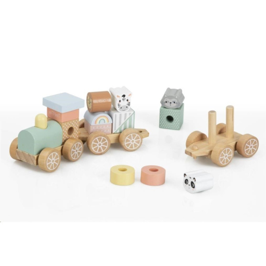 Dřevěný vláček s kostkami je multifunkční hračkou, která nabízí více možností ke hře. Děti si mohou pohrát s vláčkem i jeho jednotlivými díly, nakládat a převážek kostky i zvířátka. Stejně dobře si děti vyhrají se samotnými kostkami. Je jen na dětské fantazii kolik vagónků použijí, jaký náklad naloží a kam se s vláčkem vydají. Hra s vláčkem zdokonaluje motorické dovednosti, koordinaci oči a rukou i logické myšlení.