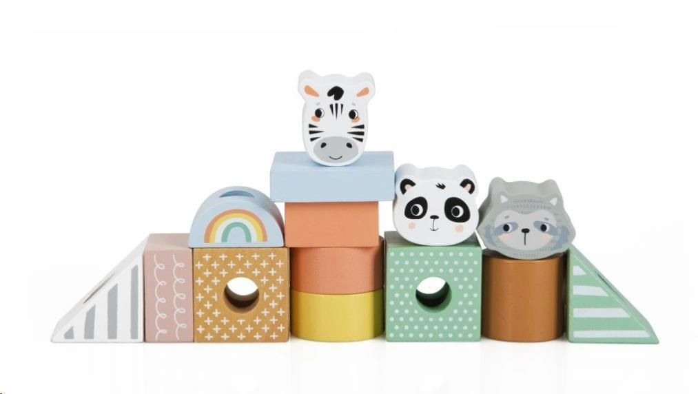 Dřevěný vláček pro děti, s kostkami a zvířátky ze ZOO, je krásnou multifunkční hračkou i dekorací do dětského pokoje. Jemné pastelové barvy propůjčují vláčku lákavý vzhled a díky neutrálním barvám je vhodným dárkem pro holčičky i kluky. Dřevěné kostky a oblíbená zvířátka mohou děti povozit po svém pokojíčku i po celém domě či bytě. Děti si mohou hrát se samotným vláčkem, s jeho jednotlivými vagónky, nakládat a vykládat kostičky a zvířátka, vytvářet různé kombinace nebo si hrát se samotnými kostkami. Při hře s vláček a jeho částmi děti zdokonalují motorické dovednosti, koordinaci očí a rukou, logické myšlení, rozvíjí logické myšlení a kreativitu.
