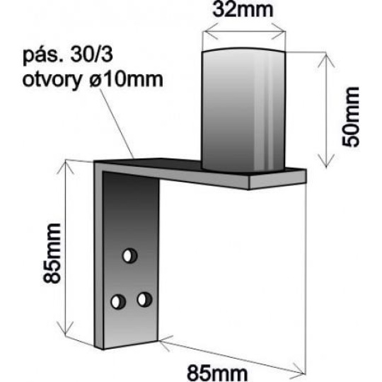 Držák antény na zeď mini, galvanický zinek, délka 8,5cm, výška 5cm