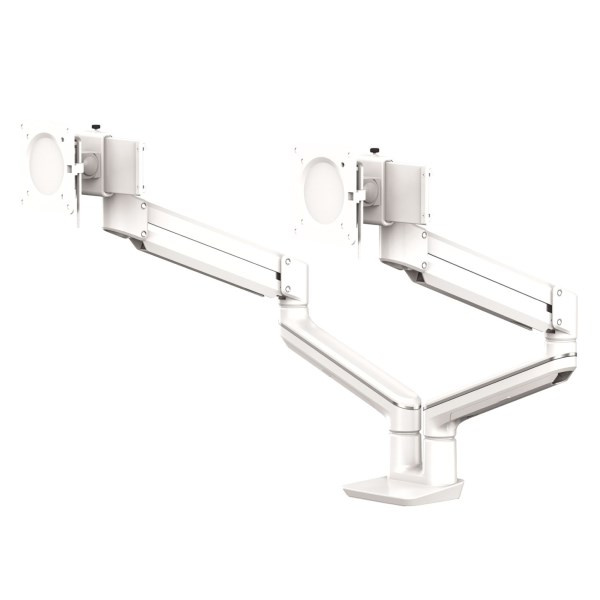 držák pro 2 monitory usnadňuje organizaci pracovního prostoru, zvětšuje prostor na pracovním stole, zmenšuje únavu zraku a zmírňuje svalové napětí ramen a krku minimalistický, stylový design s vestavěným systémem uspořádání šňůr a kabelů technologie plynových pružin umožňuje snadné nastavení monitoru pro práci a sdílení obrazovky rameno se může otočit o 360° s aretací v poloze 180° max. úhel naklápění + / - 90 ° min. - max. výška 178-500 mm max. náklon nahoru / dolů + 75°/ - 35° min. zatížení jednoho ramene je 9 kg montážní systém VESA, splňuje normy VESA 75 × 75 a 100 × 100 snadná montáž ke stolu pomocí svorky nebo šroubu s okem materiál kov doporučeno Mezinárodní akademií pro ergonomické produkty FIRA™.
