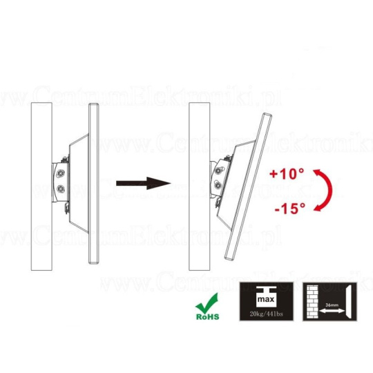 Držák monitoru Tv Fiber Novelty FN203T Sklopný držák na monitory a menší televize 13-30", VESA 75x75 a 100x100, náklon +10° až -15°, vzdálenost od zdi 36mm, nosnost 20kg, záruka 5 let. Nástěnný držák na monitory a menší televize 13-30", který umožní nastavení náklonu obrazovky +10°až -15°. Zavěšení monitoru nebo Tv je velmi snadné a rychlé, stejně tak i samotná instalace držáku na stěnu. Držák podporuje VESA standardy 75x75 a 100x100, nosnost 20kg. Barevné provedení černé, záruka 5 let. Držák na televize a monitory Fiber Novelty FN203T - sklopný, VESA standart 75x75 a 100x100 / drzakyastolky.cz Technické údaje: nosnost 20kg na televizory a monitory s úhlopříčkou 13" až 30" podporuje VESA standardy 75x75 a 100x100 umožňuje náklon +10° až -15° vzdálenost Tv od zdi 36mm konstrukce je ocelová velmi pevný a bezpečný nástěnný držák zajištění Tv nebo monitoru proti vysazení velmi snadná a rychlá montáž součástí balení je montážní materiál barevné provedení černé záruka 5 let Nástěnný sklopný držák na monitory a menší televize 13-30" Fiber Novelty FN203T Držák na Tv a monitory FN203T podporuje VESA standardy: VESA 75x75 VESA 100x100.