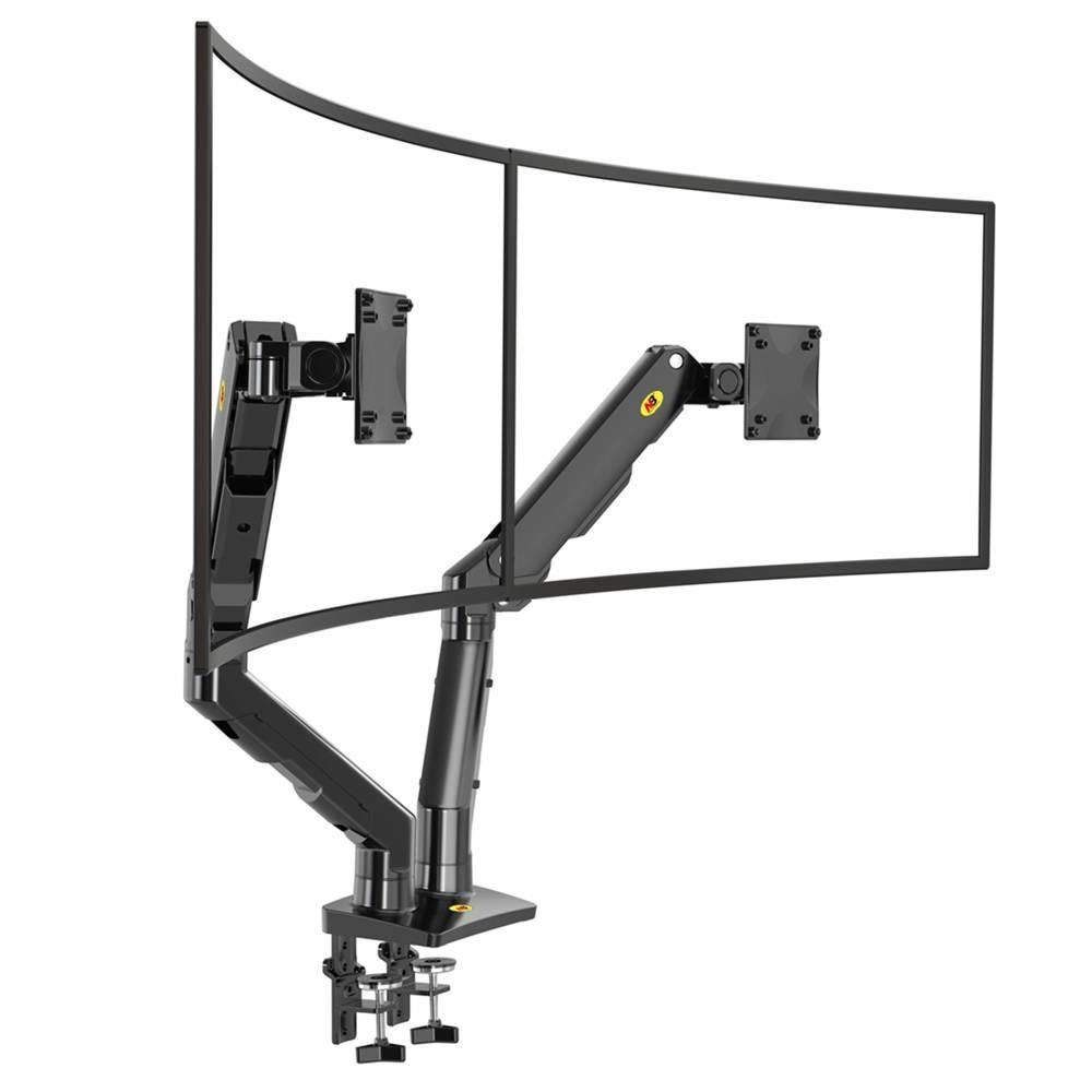 Stolní držák na 2 monitory NB G55 Profesionální stolní držák na 2 monitory 24-34", nezávislé polohování každého ramene, otáčení +/-180°, naklápění +60°/-15°, nastavení výšky 190-475mm, délky o uchycení 0-640mm, 1x USB, vedení kabeláže, 2 stolní úchyty, VESA 75x75 a 100x100, nosnost 2x16kg Stolní držák pro zavěšení 2 monitorů / Tv / displejů s úhlopříčkou 24-34". Nezávislé nastavení polohy každé obrazovky dle potřeby. Ramena mají plynový píst, který je nutné nastavit na hmotnost zavěšené obrazovky od 5kg do 16kg. Výškové polohování od 190mm do 475mm, otáčení do stran +/- 180°, naklápění +60°/-15°, nastavení vzdálenosti od stolního uchycení 0-640mm, funkce pivot +/- 360°, podpora VESA 75x75 a 100x100 s možností zakoupení nástavce na 100x200, 200x100 a 200x200. Dodáváme včetně 2 typů stolních úchytů na desky 20-90mm: svěrák pro fixaci na okraje stolů a šroubovice pro fixaci do prostoru stolové desky přes otvor 10-50mm. Systém pro vedení kabeláže. Instalační materiál. Barevné provedení černé. Nejvyšší kvalita. Záruka 5 let. Profesionální stolní kancelářský držák na 2 monitory NB G55 Technické údaje: nosnost 32kg minimální hmotnost 1 obrazovky je 5kg a maximální 16kg ramena mají plynový píst pro výškové polohování s nastavením na hmotnost obrazovky ideální na monitory a Tv s úhlopříčkou 24-34" držáky podporují VESA standardy 75x75 a 100x100 nezávislé polohování každého ramene otáčení do stran +/- 180° naklápění dolů až -15° a nahoru až +60° nastavení vzdálenosti od stolního úchytu 0-640mm nastavení výšky 190-475mm (+/-285mm) funkce pivot: rotace +/- 360° systém pro vedení kabeláže 1x USB port na stolním úchytu 2 typy úchytů na (stolové) desky 20-90mm: na okraj nebo do prostoru přes otvor 10-50mm nejvyšší kvalita provedení barva černá záruka 5 let Profesionální držák pro zavěšení dvou monitorů na stůl NB G55 Držák na 2 monitory NB G55 podporuje VESA standardy: VESA 75x75 VESA 100x100 Držák umožňuje snadné výškové polohování monitoru od 190mm do 475mm díky plynovým pístům. Ty je nutné nastavit na hmotnost zavěšeného monitoru od 5kg do 16kg. Hmotnost monitoru nesmí být nižší jak 5kg, jinak nebude možné výšku měnit, monitor by byl stále v nejvyšší poloze. Držák na 2 monitory do kanceláře nebo pracovny NB G55 2 typy uchycení na stoly / desky: svěrák s 2 bodovým fixováním na desky o síle 20-90mm šroubovice, fixace k desce 20-90mm přes otvor 10-50mm 2 způsoby uchycení na stolové desky NB G55 Držáky NB G55 jsou vhodné na: klasické rovné monitory prohnuté (curved) monitory širokoúhlé monitory televizory All in One Pc dotykové obrazovky - monitory i televizory zobrazovací panely s podporou VESA.