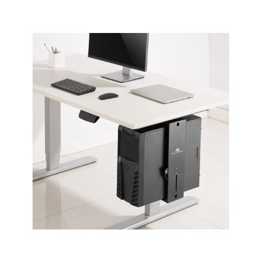 Držák na PC Fiber Mounts M8C85 Držák na PC, uchycení pod stůl, nastavení velikosti dle skříně, otočný, nosnost 10kg Držák MC-885 je určen pro vertikální montáž počítače pod desku stolu. Je to perfektní řešení pro optimální využití pracovního prostoru. Použití držáku MC-885 zvyšuje množství volného místa na stole a současně udržuje počítač nad podlahou, daleko od nohou, prachu a statické elektřiny. A co je nejdůležitější, počítač máte stále na dosah ruky. Stolní držák na PC, přizpůsobí se velikosti skříně, otočný, nosnost 10kg, TOP kvalita - Fiber Mounts M8C85 Technické údaje: nosnost 10kg nastavení velikosti dle PC skříně výška 373-583mm šířka 88-203mm otáčení do stran +/- 180° kvalitní ocelová konstrukce snadná instalace a fixace PC skříně barva černá záruka 5 let Díky nastavení výšky a šířky lze rukojeť přizpůsobit většině standardních počítačových skříní. Design rukojeti navíc umožňuje otočit připojený počítač o 180 °, což usnadňuje přístup ke konektorům a kabelům na zadní straně krytu..