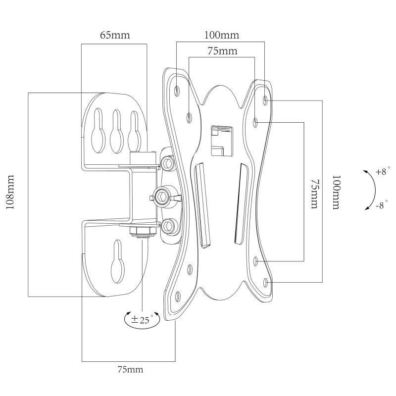 Držák monitoru Tv Ergosolid FN502 Kvalitní nástěnný držák na Tv monitory 10-30", otočný +/- 25°, sklopný +/- 8°, podpora VESA 75x75 a 100x100, vzdálenost od zdi 75mm, nosnost 25kg Kvalitní řešení, jak zavěsit menší televizi nebo monitor s úhlopříčkou 10-30" na stěnu a mít možnost natáčení do stran a naklápění. Nástěnný držák FN502 Vám umožní kdykoliv televizi otočit do strany až o 25° a naklopit až o 8°. Podporuje VESA standardy 75x75 a 100x100, vzdálenost Tv od zdi je 75mm a zavěsit můžete obrazovky s hmotností až 25kg. Vynikající kvalita konstrukce zajistí naprosto bezpečné a spolehlivé zavěšení. Snadná montáž, instalační materiál a záruka 10 let. Otočný a sklopný držák Tv monitoru Ergosolid FN502 Technické údaje: nosnost 25kg podpora VESA standardu 75x75 a 100x100 na monitory a televizory 10" až 30" (dle VESA i větší) otáčení do stran +/- 25° náklon +/- 8° vzdálenost od zdi 75mm velmi pevná a bezpečná konstrukce materiál ocel barevné provedení černé balení obsahuje instalační materiál záruka 10 let Otočný a sklopný držák na Tv monitor bez ramene, vzdálenost 75mm, nosnost 25kg - Ergosolid FN502 Držák Ergosolid FN502 podporuje VESA standardy: VESA 75x75 VESA 100x100 Na držák Ergosolid FN502 je možné zavěsit všechny typy, značky a velikosti Tv a monitorů, jejichž hmotnost je do 25kg a které podporují VESA standard 75x75 nebo 100x100. Úhlopříčka není podstatná - uváděné úhlopříčky v popise jsou pouze orientační. VESA standard je celosvětově uznávané označení pro standard montáže televizorů, monitorů a obrazovek. Označuje rozteč 4 montážních otvorů na zadní straně přístroje pro uchycení na držák..