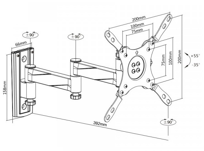 Otočný, sklopný a délkově nastavitelný držák na obrazovky 13-43", který zajistíte proti pohybu v požadované poloze, ideální do karavanů nebo na lodě, VESA 75x75 až 200x200, nosnost 15kg.... více