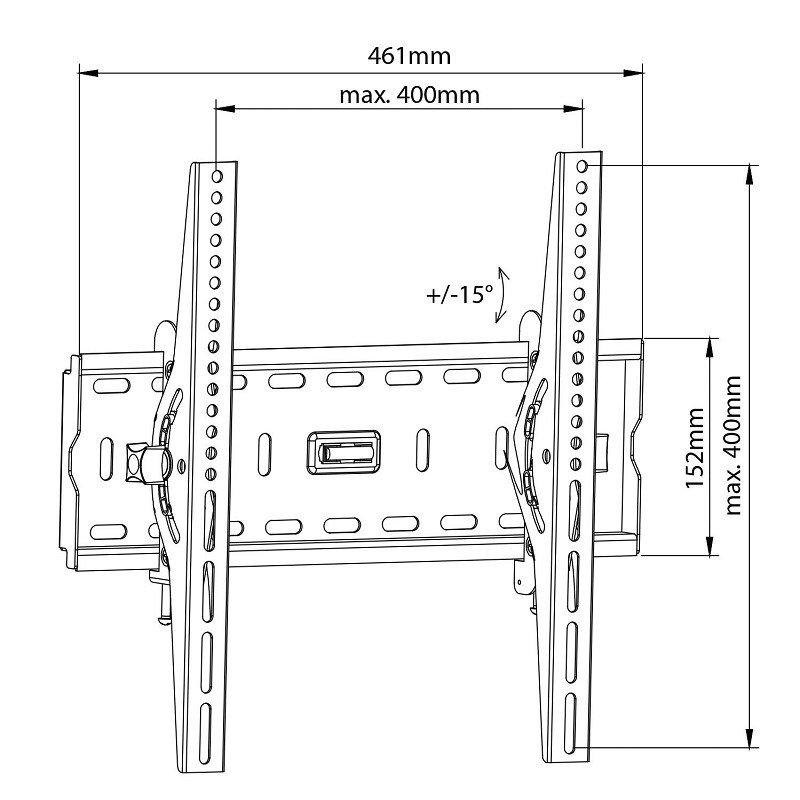 Držák Tv s náklonem Fiber Mounts M7C78 Držák na Tv 26-60" s náklonem +15°/- 15°, vzdálenost Tv od zdi 65mm, VESA standardy 75x75 až 400x400, profesionální konstrukce, instalační materiál, vodováha, nosnost 45kg, záruka 5 let Naklápěcí držák na televize i monitory s vynikající profesionální konstrukcí, která je velmi pevná a bezpečná. Držák umožňuje naklápění obrazovek pod úhlem až +/-15°, potřebný úhel snadno zaaretujete. Minimální vzdálenost televize od zdi je 65mm. Zavěsit lze televizory a monitory s hmotností až 45kg, Obrazovku na držáku snadno zajistíte pomocí 2 bezpečnostních šroubů. Balení obsahuje instalační materiál. Nástěnný úchyt o rozměrech 461x152mm je osazen integrovanou vodováhou pro usnadnění montáže držáku na stěnu. O kvalitě držáku svědčí i prodloužená záruka na 5 let. Barevné provedení černé. Vynikající držák na televize s náklonem až 15 stupňů Fiber Mounts M7C78 Technické údaje: nosnost 45kg na televize a monitory s úhlopříčkou 26" až 60" (dle VESA i větší) podpora VESA standardu 75x75 až 400x400 možnost náklonu +/- 15° aretace obrazovky v požadovaném náklonu vzdálenost obrazovky od zdi 65mm velmi pevná ocelová konstrukce robustní provedení nejvyšší kvality instalační materiál součástí balení integrovaná vodováha barva černá záruka 5 let Nástěnný držák pro zavěšení televize a nastavení jejího sklonu +/- 15° Fiber Mounts M7C78 Držák Tv s naklápěním Tv M7C78 je vhodný na všechny typy, značky a velikosti televizorů (úhlopříčka není podstatná), které mají hmotnost maximálně 45kg a které podporují některý z níže uvedených VESA standardů: VESA 75x75 VESA 100x100 VESA 200x100 nebo 100x200 VESA 200x200 VESA 300x100 nebo 100x300 VESA 300x200 nebo 200x300 VESA 300x300 VESA 400x100 nebo 100x400 VESA 400x200 nebo 200x400 VESA 400x300 nebo 300x400 VESA 400x400.