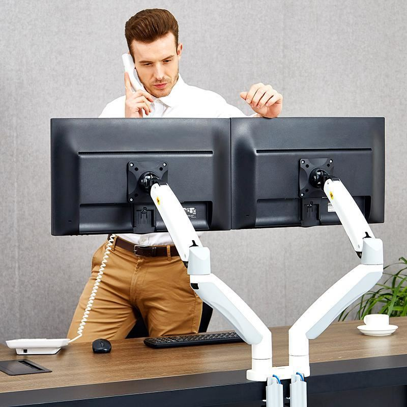 Profesionální stolní držák na 2 monitory 21"-32", plně polohovatelný, bílý.... více