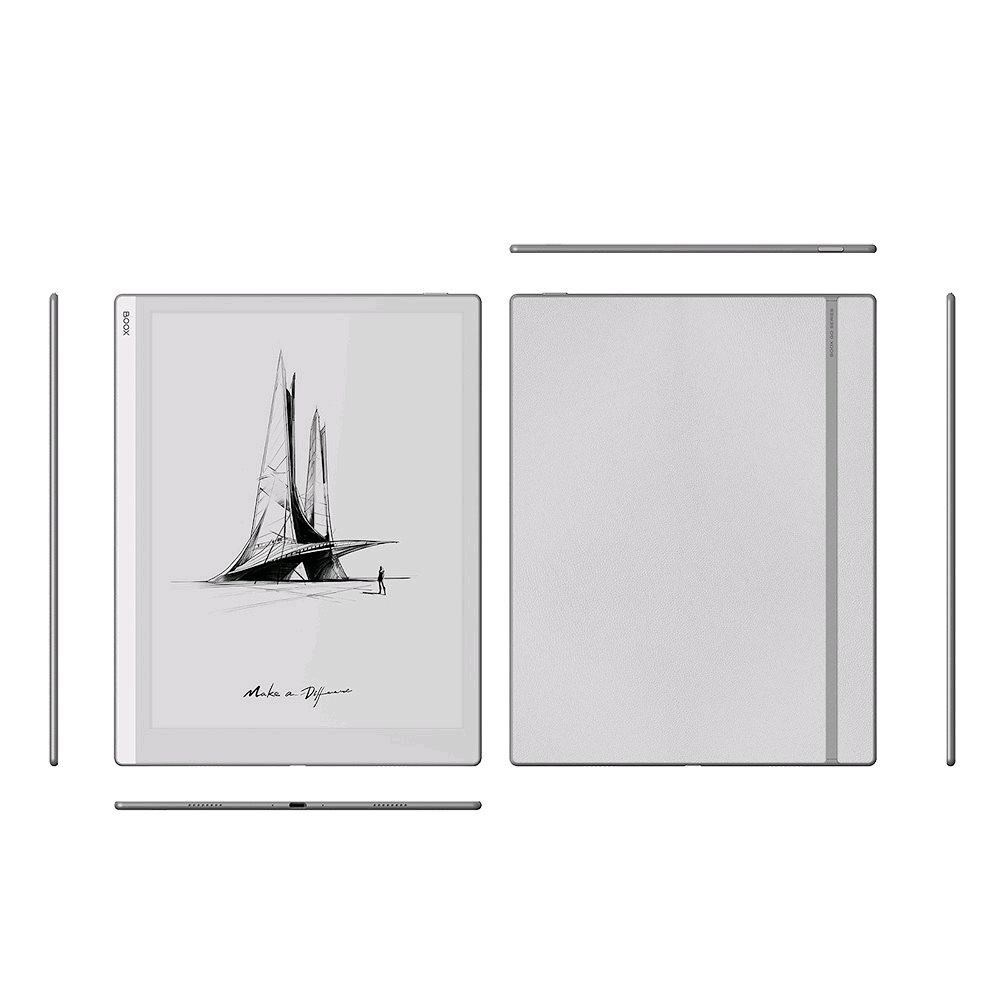 ONYX BOOX Go 10.3 je velkoformátová 10,3” E čtečka, která vám umožňuje pořizovat ručně psané poznámky perem dodávaným se zařízením. Model je vybaven obrazovkou E Ink Carta Plus (Carta 1200) s vysokým rozlišením a dvěma senzorovými vrstvami: kapacitní vrstvou pro dotyk prstů a indukční vrstvou pro práci s perem. Zařízení je založeno na vysoce výkonné hardwarové platformě a lehkém tenkém těle (4,5 mm). ONYX BOOX Go 10.3 běží na 8jádrovém procesoru a 4 GB RAM a 64 GB energeticky nezávislého úložiště bude stačit pro uložení velkého množství e-knih a dokumentů. Vestavěný dvoupásmový Wi-Fi modul umožňuje přístup k internetu a využívání síťových služeb a podpora Bluetooth 5.0 umožňuje připojení externích zařízení a příslušenství. S pomocí předinstalovaného audio přehrávače můžete poslouchat hudbu a audioknihy. Podporována je také funkce Text-To-Speech. Model běží na operačním systému Android 12 a umožňuje instalovat a používat aplikace třetích stran. Zařízení má obchod s aplikacemi Google Play pro stahování a instalaci různých aplikací třetích stran. Displej je pokryt speciálním sklem ONYX Glass, které ho chrání před poškozením. Díky velkému displeji a možnosti dělat si ručně psané poznámky bude model výbornou volbou pro ty, kteří plánují pracovat s dokumenty a hodně psát. ONYX BOOX Go 10.3 nemá systém předních světel a byl navržen pro práci ve vnějším osvětlení.