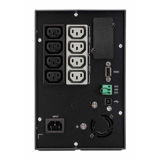 | Speciální funkce | Automatická regulace napětí (AVR) Energetická účinnost, snížení nákladů na energii a chlazení Poskytuje čistý sinusový výstup 1 slot pro volitelnou com kartu (karta pro správu sítě, reléová karta nebo síťová a průmyslová karta) Kompatibilní s virtuálními prostředími (VMware, Hyper-V, Citrix Xen, Redhat). Plná integrace se softwarem Eaton Intelligent Power Manager 1 port USB + 1 sériový port Technologie Advanced Battery Management (ABM) pro zvýšení životnosti baterie Grafický displej LCD nové generace Baterie vyměnitelné za provozu Vzdálený restart a optimalizace doby provozu díky 2 spravovatelným skupinám zásuvek Konektory pro dálkové zapnutí/vypnutí a dálkové vypnutí napájení |