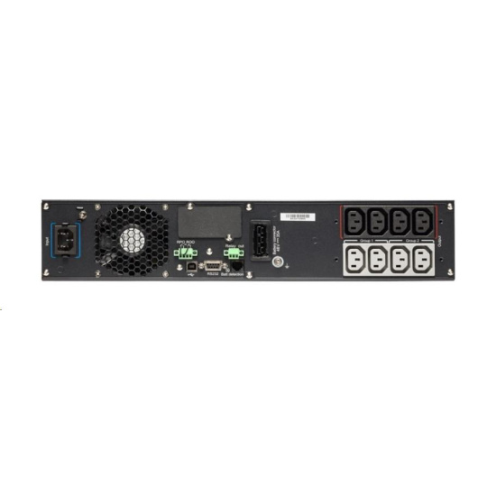 | Komunikace | USB port (kompatibilní s HID) Sériový port (RS232) Mini svorkovnice pro dálkové zapnutí / vypnutí (ROO) Mini svorkovnice pro vzdálené vypnutí napájení (RPO) Mini svorkovnice pro výstupní relé Bezpotenciálové kontakty (3 výstupy, 1 vstup, optočlen, DB9)  |