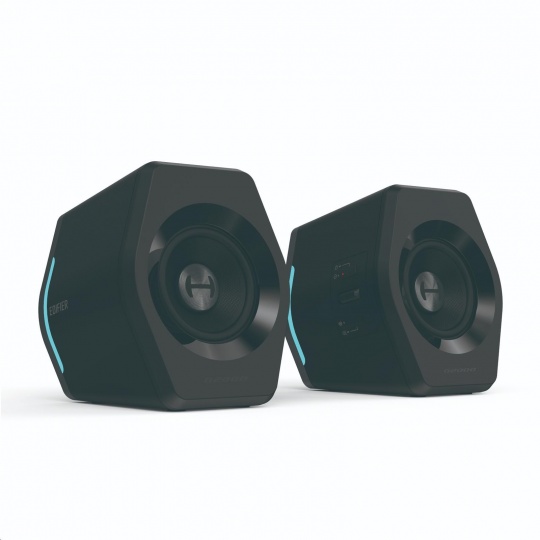 Kompaktní reproduktory EDIFIER G2000 s 2.75“ měniči a RMS výkonem až 16W vás překvapí svojí kvalitou zvuku. Profesionální zvukový čip G2000 je vybaven vyladěnými EQ algoritmy pro hry, filmy a hudbu, takže můžete snadno přepínat mezi jednotlivými režimy. Reproduktory jsou vybaveny efektním podsvětlením, které dodá hudbě, filmům a hlavně hrám zcela nový rozměr, a to díky 12 světelným RGB efektům.