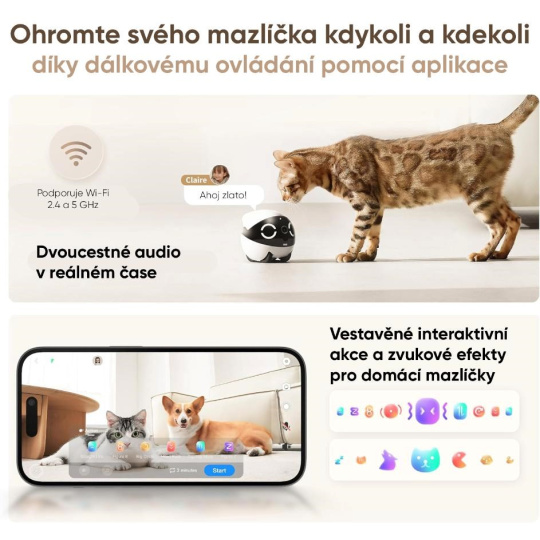 - Všestranné využití – skvělý pro zábavu domácích mazlíčků, komunikaci s dětmi i jako mobilní domácí kamera.