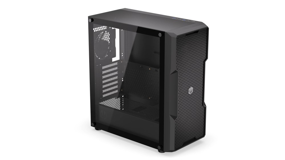 Skříň formátu Middle Tower s průhlednou bočnicí z tvrzeného skla nabízí dvě 2,5" pozice pro SSD disky a dvě 3,5" pozice pro pevné disky. Na horní části se nachází dva USB 3.0 porty, sluchátkový výstup a audio vstup pro mikrofon. Vybavena je čtyřmi 120 mm ventilátory, které spolu s perforovaným čelním panelem zajišťují dostatečné proudění vzduchu. Ve skříni je dostatek prostoru pro chladič CPU do výšky až 162 mm a grafickou kartu o délce až 370 mm. Dodávána je bez zdroje. Součástí je také sada prachových filtrů.