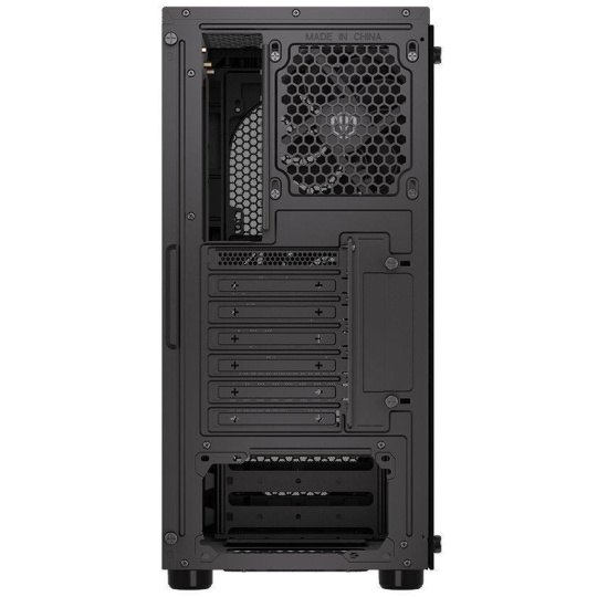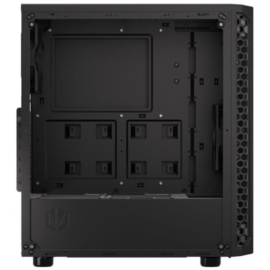 Skříň formátu Middle Tower s průhlednou bočnicí z tvrzeného skla nabízí dvě 2,5" pozice pro SSD disky a dvě 3,5" pozice pro pevné disky. Na horní části se nachází dva USB 3.0 porty, sluchátkový výstup a audio vstup pro mikrofon. Vybavena je dvěma 120 mm ventilátory, které spolu s perforovaným čelním panelem zajišťují dostatečné proudění vzduchu. Důmyslné řešení umožňuje pohodlné umístění až 360 mm dlouhého výměníku vodního chlazení na přední straně. Ve skříni je dostatek prostoru pro chladič CPU do výšky až 161 mm a grafickou kartu o délce až 350 mm. Dodávána je bez zdroje. Součástí je také sada prachových filtrů.