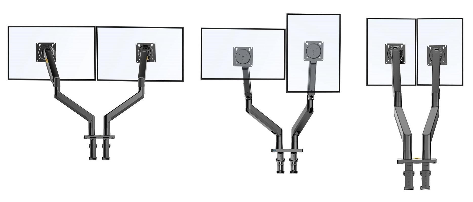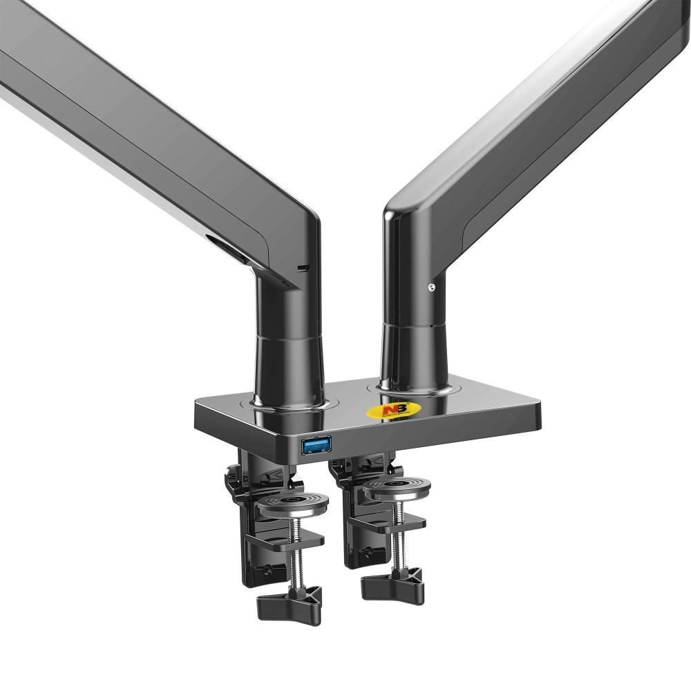 Kancelářský stolní držák na 2 monitory NB G32 Ergonomický stolní držák na 2 monitory 17-32", nastavitelná výška, otáčení, naklápění, vysouvání, PIVOT, vedení kabeláže, VESA 75x75 a 100x100, nosnost 30kg Profesionální designový stolní držák na 2 monitory 17-32" nejvyšší kvality, snadno polohovatelný a ergonomický. Výškové polohování monitorů od stolové desky 200-530mm, otáčení do stran +/-360°, naklápění monitorů +85°/-30°, maximální vzdálenost od uchycení 630mm, PIVOT, USB port, 2 typy stolních úchytů, aretace otáčení a vysouvání, VESA 75x75 a 100x100, nosnost 30kg Kancelářský stolní držák na 2 monitory, plně ergonomický NB G32 Technické údaje: celková nosnost 30kg plynová pružina s nastavením na hmotnost každého monitoru 2-15kg podpora VESA standardů 75x75 a 100x100 plynulé nastavení výšky monitorů od stolní desky 200-530mm max. vysunutí od stolního uchycení 630mm naklápění monitorů +85° / -30° otáčení každého ramene do stran +/- 360° funkce PIVOT (rotace monitorů +/-360°) systém vedení kabeláže aretace ramen v poloze (červíky) USB port na podstavě 2 typy stolních úchytů (na okraj nebo do prostoru) nejvyšší kvalita s důrazem na detail záruka 3 roky Nezávislé polohování monitorů 17-32" na stolním držáku NB G32 Kancelářský držák na 2 monitory podporuje VESA standardy: VESA 75x75 VESA 100x100 možnost zakoupení včetně VESA nástavce 200x100 (viz. výše zvolte VESA standard) možnost zakoupení včetně VESA nástavce 200x200 (viz. výše zvolte VESA standard) 2 typy stolních úchytů: na okraj stolu, max. tloušťka stolové desky 80mm do prostoru stolové desky přes otvor (10-50mm), max. tloušťka stolové desky 90mm.