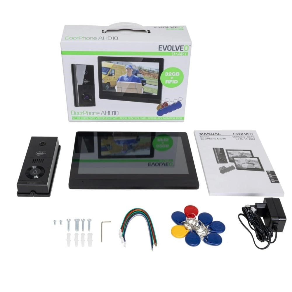EVOLVEO DoorPhone AHD10, Sada domácího WiFi videotelefonu s ovládáním dveří a RFID, černý 10" monitor, 32GB