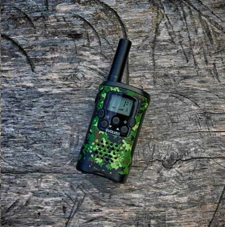 Dodávána s dobíjecími bateriemi, velký displej, dosah až 8 km v otevřeném prostoru, výkon 0.5 W, PMR 446 standard, VOX, CALL, Roger Beep, CTCSS, integrovaná LED svítilna, barva Army camouflage