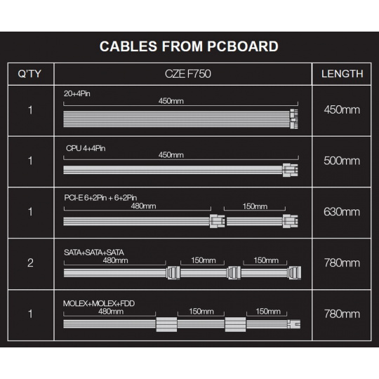 • PCI-E (6+2) +(6+2)pin (480+150mm)