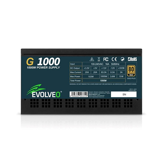EVOLVEO G1000 zdroj 1000W, 80+ GOLD, ATX 3.1, aPFC, 140 mm ventilátor, záruka 3 roky, černý