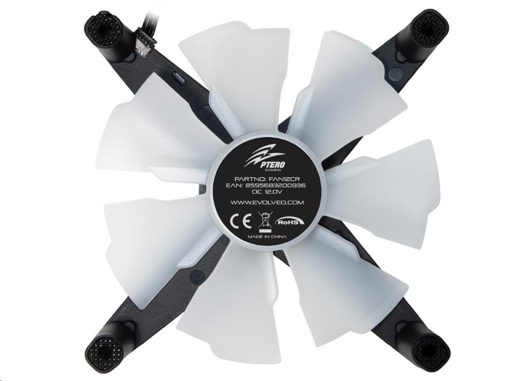 EVOLVEO Ptero 12CR, PWM, 4pin, LED červený, 12V ventilátor 120mm