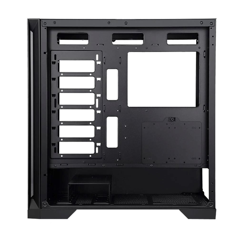 Hned na první pohled vás tato PC skříň zaujme stylovým průhledným provedením. Čelní panel i bočnice jsou vyrobeny z temperovaného skla, takže při pohledu na počítač můžete obdivovat světelnou show RGB ventilátorů nebo se na vlastní oči přesvědčit, že hardware šlape jak švýcarské hodinky. Použité bezpečnostní sklo o síle 4 mm má navíc i další výhodu – kdyby nedejbože došlo k nehodě, nezasype vás ostrými střepy, ale rozpadne se na neškodné drobné kousky.