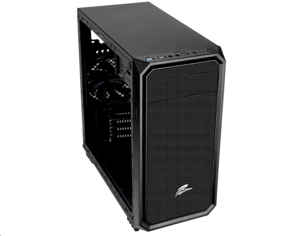Provedení skříně:Midi Tower; Barva skříně:Černá; Počet pozic 5.25":1; Počet pozic 3.5" (HDD):2; Počet pozic 2.5" (SSD):2; Vybavení PC skříně:Bez integrovaného zdroje, Přední USB panel.... více