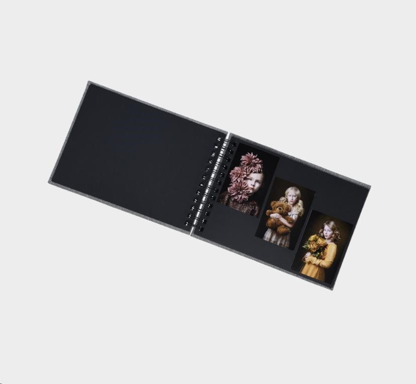Wire-O album with black wire and cover of textile. 40 black pages. Page size: 21x16.