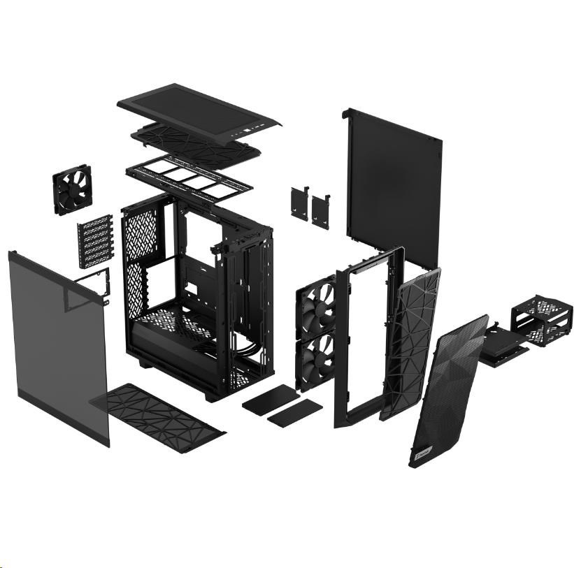 FRACTAL DESIGN skříň Meshify 2 Compact Black TG Light Tint, USB 3.1 Type-C, 2x USB 3.0, bez zdroje, mATX