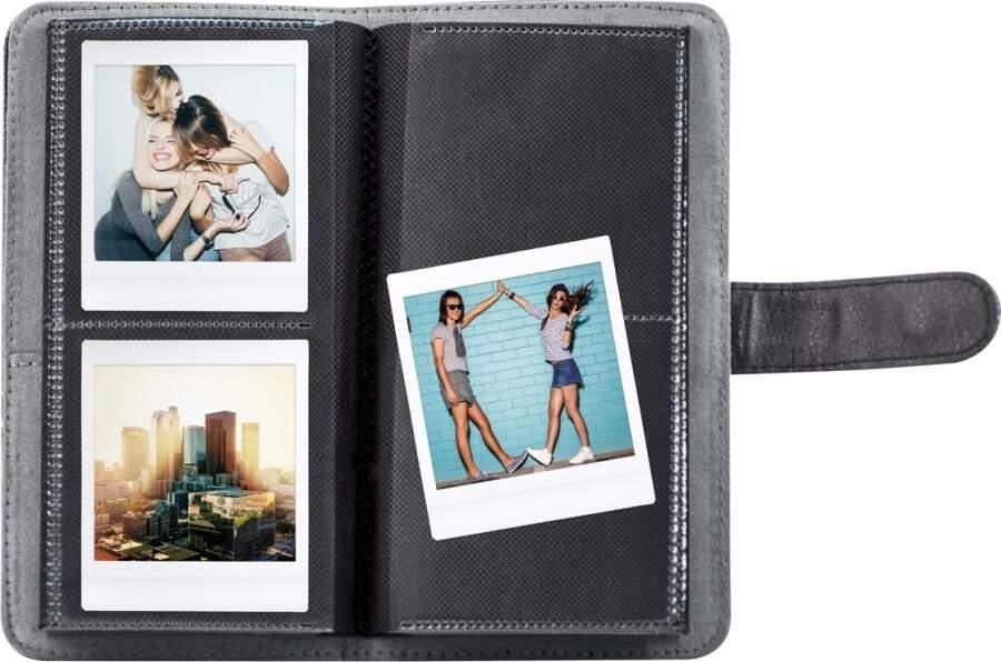 Foto album je určeno pro fotografie Instax Mini a dokáže pojmout celkem 108 snímků na 18 stranách. Materiál: polyuretanová kůže v pěti různých barvách..