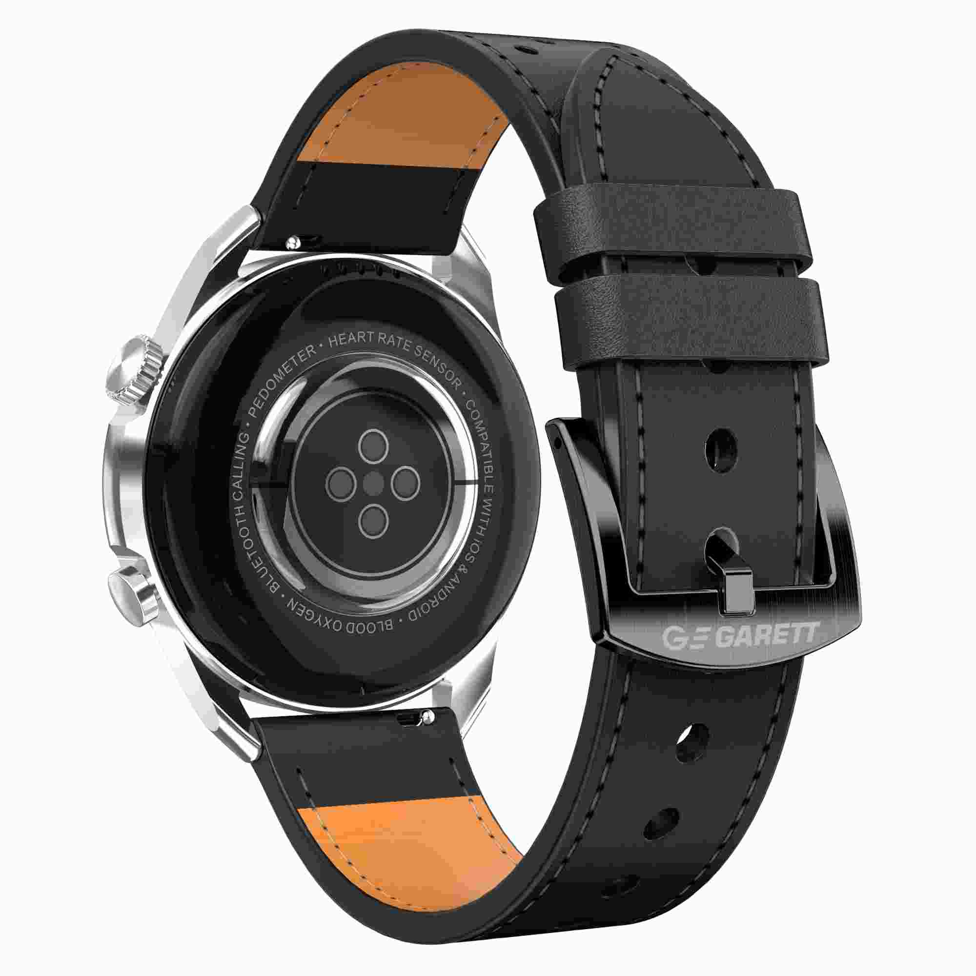 - Sada obsahuje: chytré hodinky Garett s koženým páskem, náhradní silikonový řemínek, nabíjecí kabel USB (bez zástrčky do zásuvky), příručku QSG