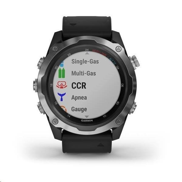 Potápěčský počítač s funkcemi chytrých a sportovně všestranných GPS hodinek, s mapami, MP3 hudbou a bezkontaktními platbami Garmin Pay. Safírové sklo, ocelová luneta, silikonový řemínek..... více