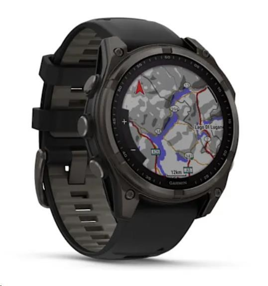 Garmin - fenix 8 Solar Sapphire - 47 mm - Carbon Gray DLC Titanium with Black | Pebble Gray Silicone Band, EU