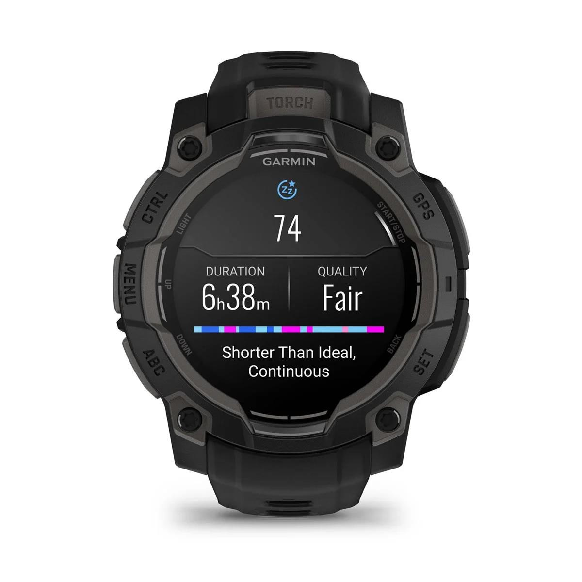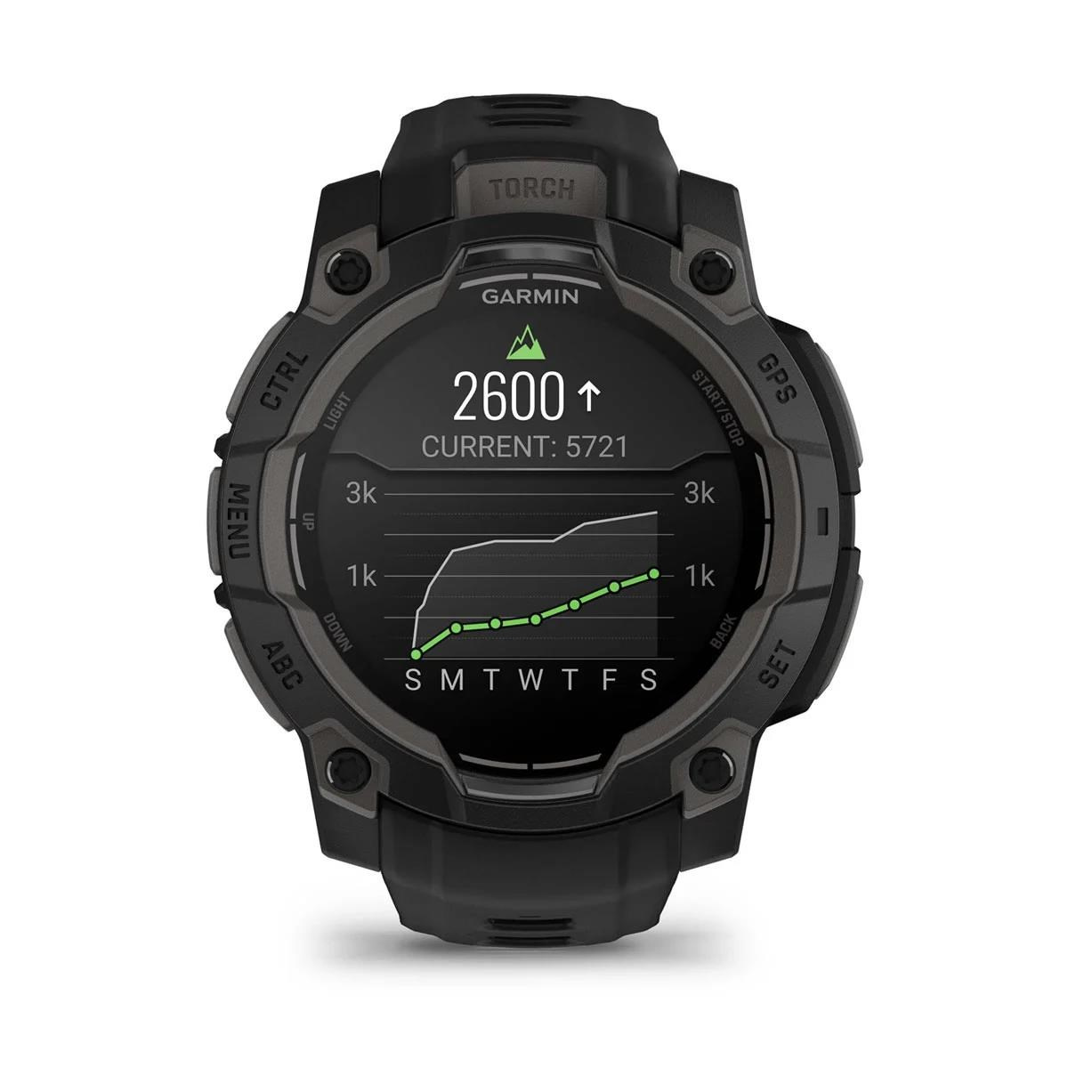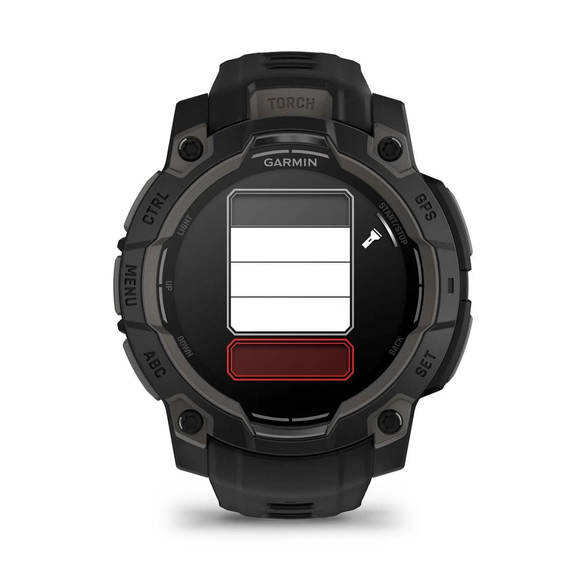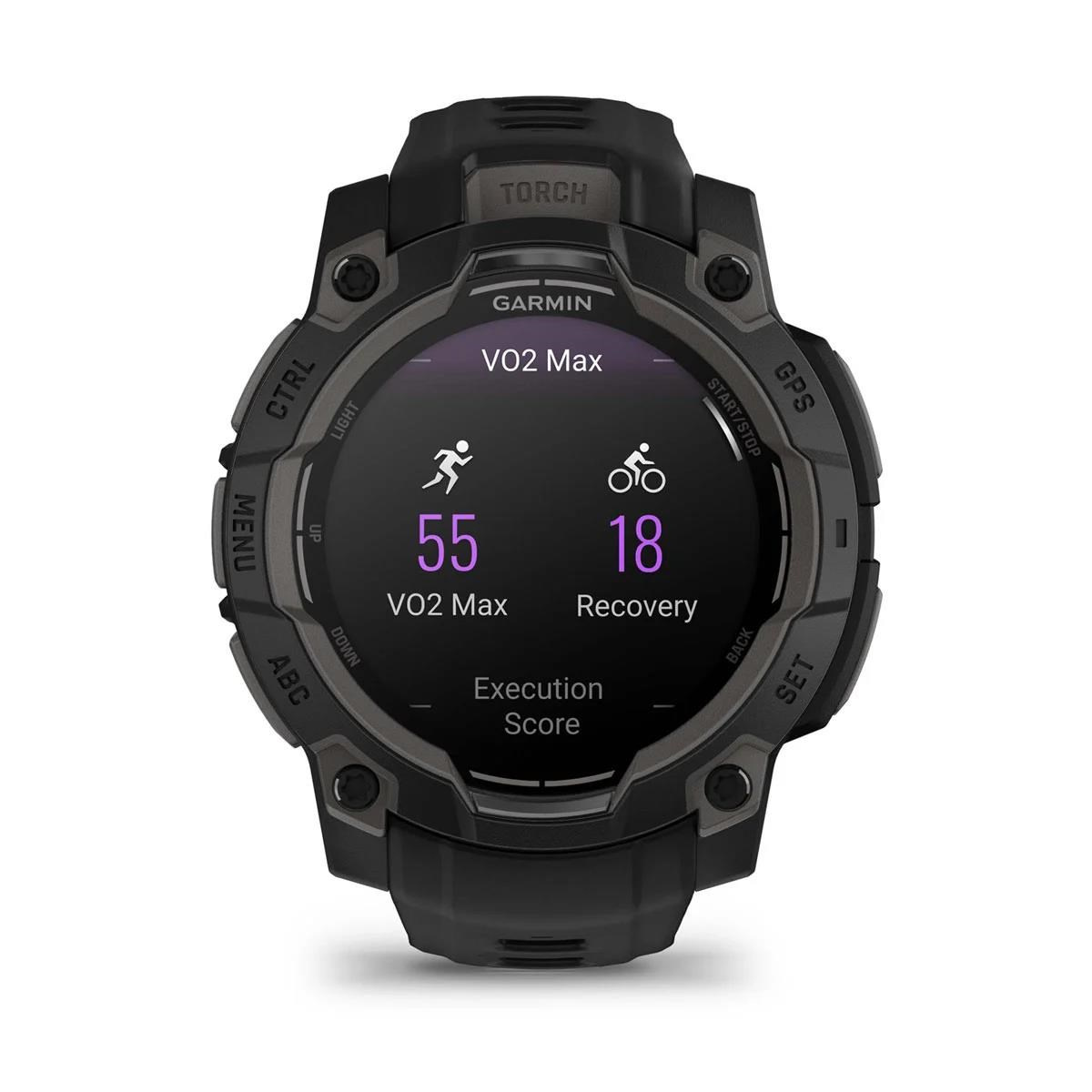 Zářivý AMOLED displej ve vysoce odolném provedení - luneta zpevněná kovovými prvky poskytuje v kombinaci s tvrzeným sklíčkem účinnou ochranu proti poškrábání. V pouzdře hodinek se ukrývá výkonná LED svítilna s nastavitelným jasem v několika úrovních a světlem bílé nebo červené barvy. K dispozici je sada funkcí pro nepřetržitý monitoring zdravotních funkcí. Například měření srdečního tepu ze zápěstí, pokročilé sledování spánku, měření okysličení krve pomocí Pulse Ox2 senzoru a další.