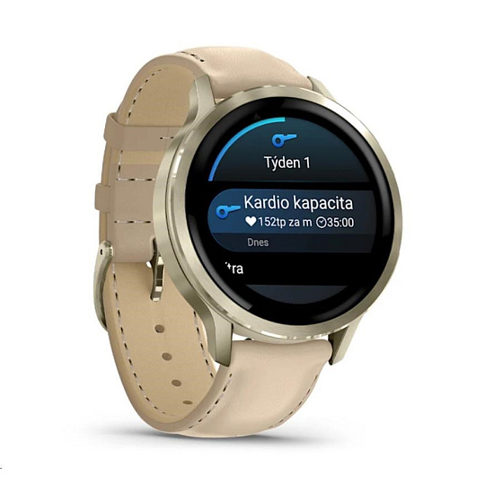 Garmin Venu 4 (41 mm) Zlaté / Bílý silikonový řemínek a Light Sand kožený řemínek, EU (upravit kartu)