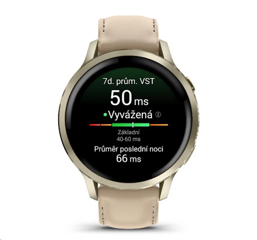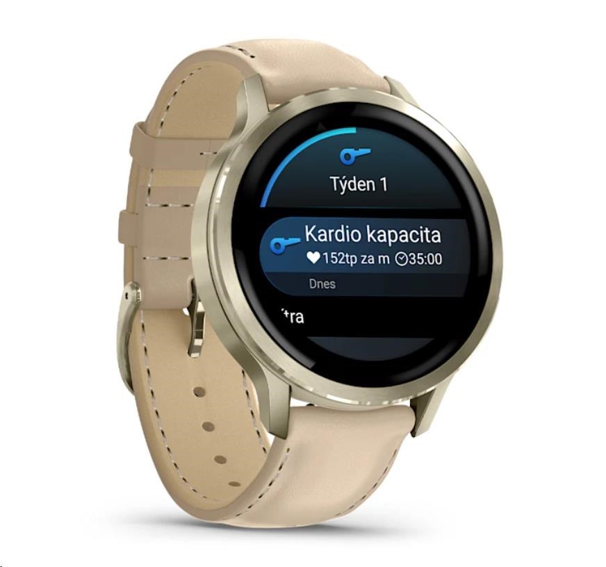 Garmin Venu 4 (41 mm) Zlaté / Bílý silikonový řemínek a Light Sand kožený řemínek, EU (upravit kartu)