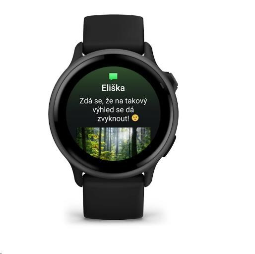 - Funkce zdraví: sledování srdečního tepu, dechová frekvence, funkce Body Battery, celodenní stres, sledování spánku, zdraví žen, snímek zdravotního stavu