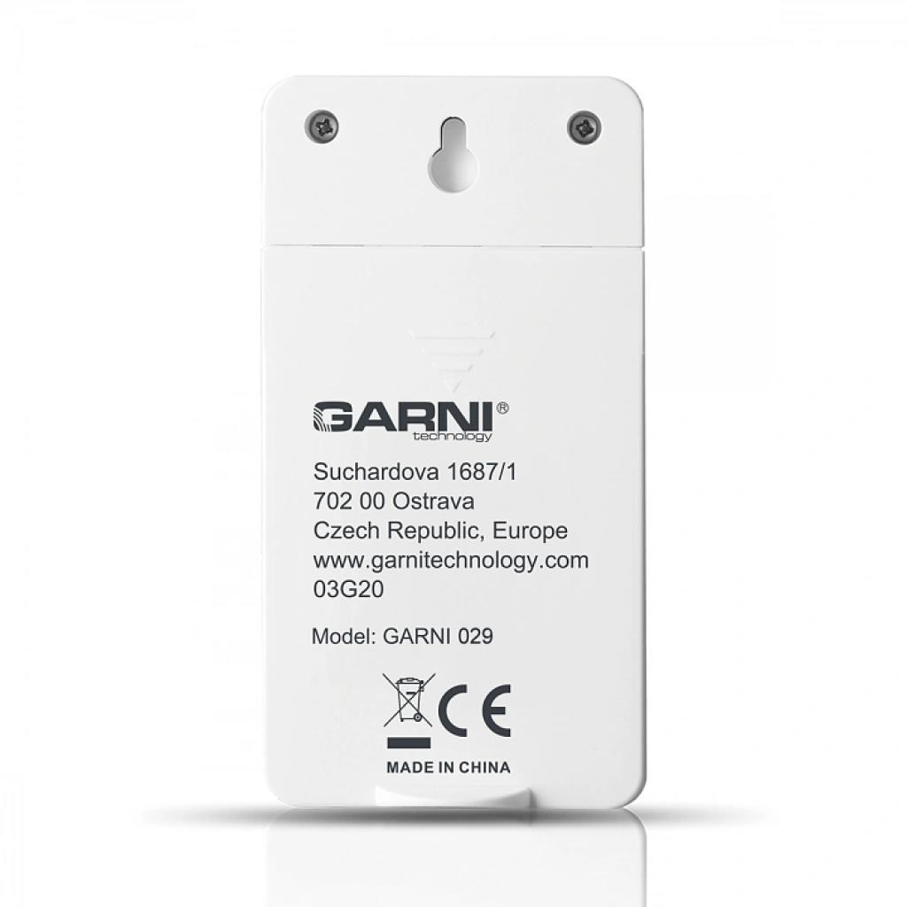 Bezdrátové čidlo pro měření teploty, určeno pro meteorologickou stanici GARNI 365 Arcus vlhkosti odolné, krytí IPX4 (odolné proti stříkající vodě) displej o rozměrech 19 x 11 mm velikost číslic na displeji: teplota 6,5 mm měření teploty 3 kanály maximální RF výkon 10 dBm (10 mW) možnost postavení a zavěšení barva bílá.